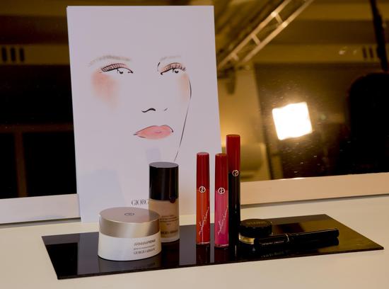 步骤呢则是和一般彩妆步骤类似▪◁=,先以阿玛尼‘光钥新肌’柔光水润霜进行妆前打底,加以按摩静待面霜充分被肌肤吸收后▪★,再进行后续底妆的加持;底妆选取全新阿玛尼无痕遮瑕乳与无痕持妆粉底液进行调整与修饰◇▼▽,让脸部与脖颈肤色完美一致,宛若天生般自然。眼部和颧骨处,选取全新阿玛尼红管唇釉(#301),以大面积晕染的方式进行橙色的叠加;眼部妆容则依靠阿玛尼臻致造型美眸膏#2、全新阿玛尼决战时尚大师眼线液以及全新阿玛尼黑色魅眼浓情睫毛膏来完成;唇部采用全新阿玛尼红管唇釉#301 与 #515 进行混合来完成,最后用粉饼定妆~