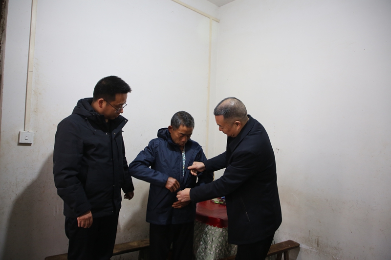 在紫薇镇尖峰村的山间小路上,雨夹雪打湿了路面◁…,泥泞难行。印江残联工作人员和紫薇镇镇村干部一行拎着冬衣和慰问金走进村民余光辉家中。看到干部们冒着严寒赶来…,余光辉连忙起身迎接,布满皱纹的脸上瞬间绽开欣慰的笑容。“来,老人家☆-■,试试这件衣服合不合身!”干部们细心地拆开包裹,帮老人穿上厚实的冬衣,又反复叮嘱-…:“天气越来越冷,照顾好儿子的同时,也得保重自己的身体★◇。”余光辉的家庭饱经磨难,儿子余闵患有精神二级残疾,三年前又不幸确诊尿毒症,双重病痛让这个家庭的生活步履维艰……■。△□“今天天气非常冷=◆…,县残联和镇里面■=○、村里面的干部来看我,很感谢你们!◁□•”朴实的话语里,满是余光辉对这份关怀的珍视。