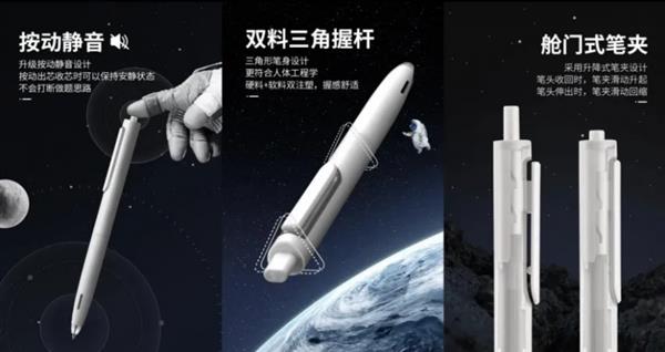 这是一款在线上线下同步推出的原创IP产品,包括按动铅笔、走珠笔、中性笔等品类。刘勇回忆,团队在调研市场后发现,在笔的功能设计和外观造型上,很多消费者对科技感文具情有独钟。为此,点石制笔研发团队以探索宇宙作为产品主题,设置了升降笔夹、双珠笔头等创新元素,采用极具未来感的外观造型,模拟飞船舱体的线条与色彩搭配,打造了这款独具特色的“科技感”IP。