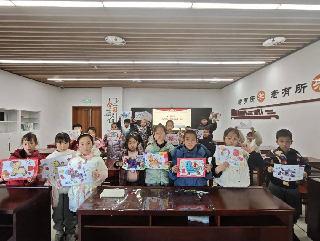 活动最后,孩子们举起自己色彩斑斓、充满童趣的作品合影留念。一张张灿烂的笑脸,与画中灵动的小马相映成趣。此次活动不仅激发了孩子们的想象力与创造力,更让他们在绘画中感受到艺术的魅力,将对马年的美好祝愿融入笔下的每一抹色彩与线条之中。